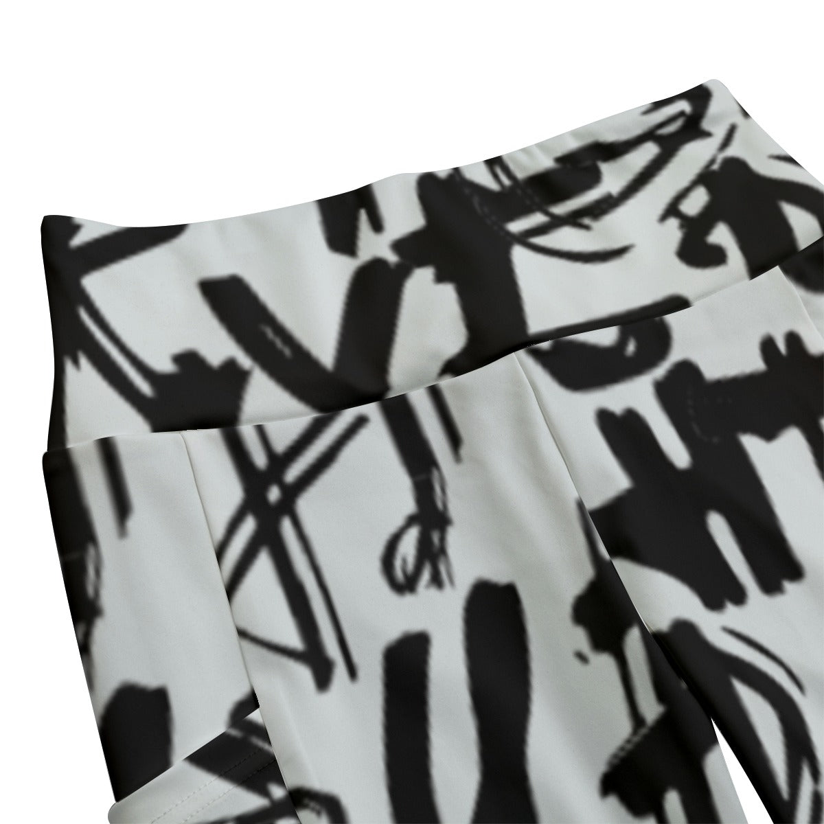 Ptahra B Women's Art Lettering High Waist Leggings With Side Pocket