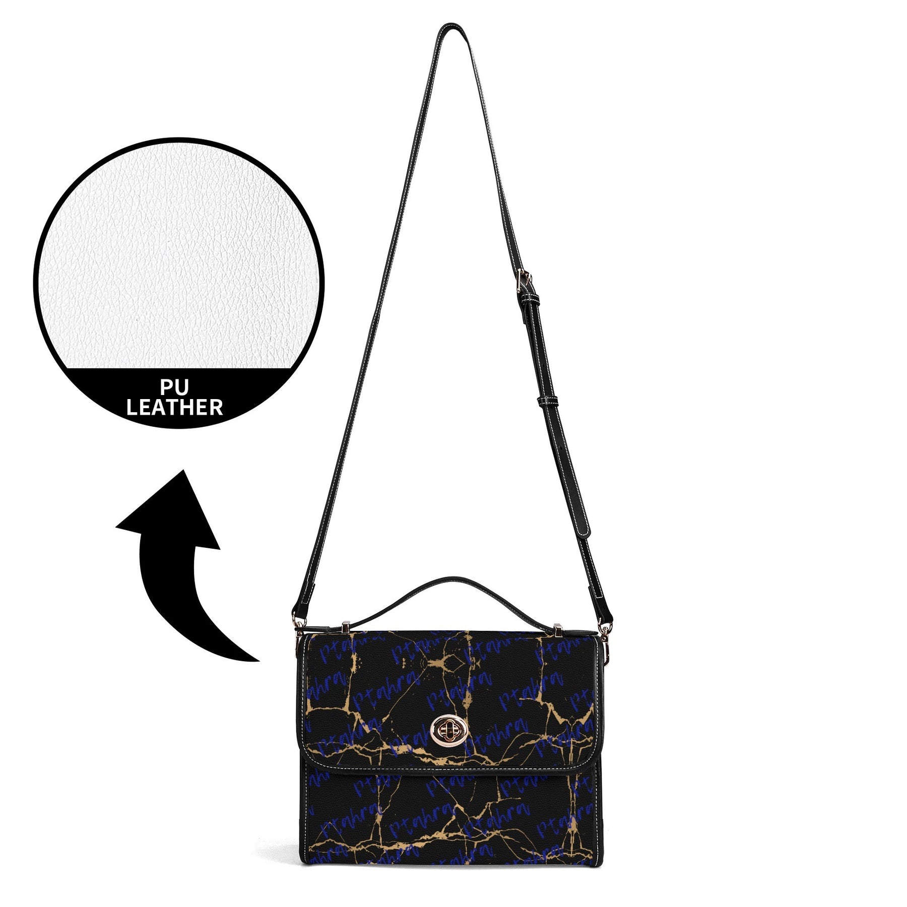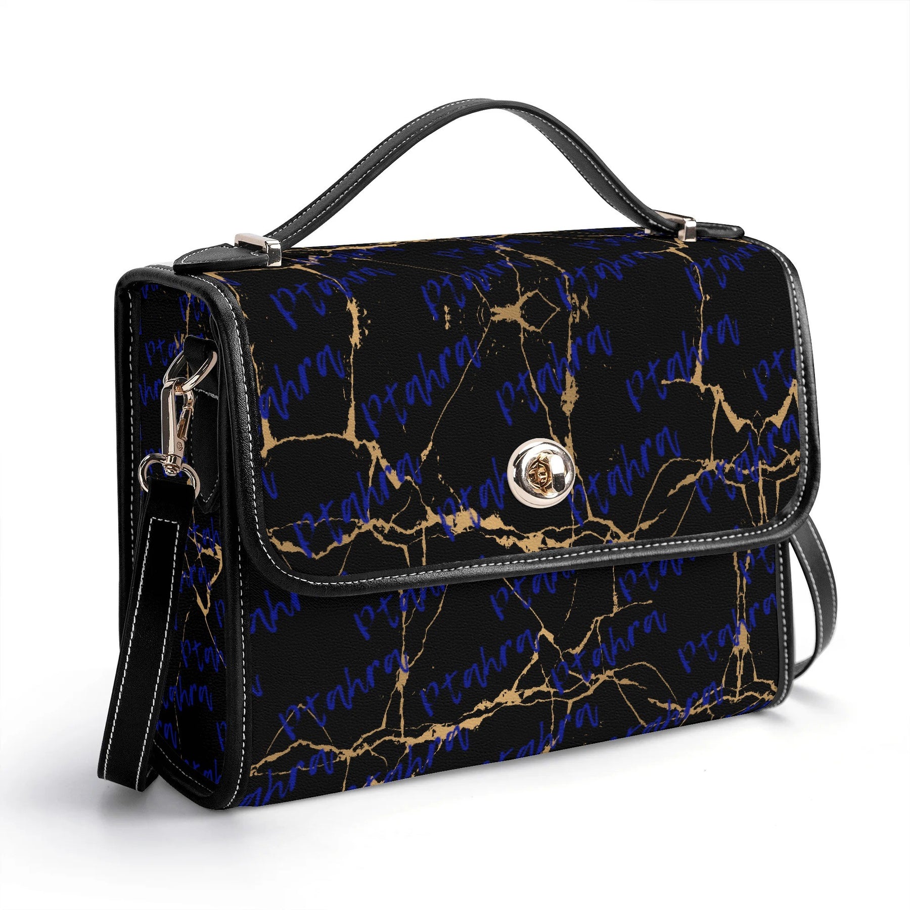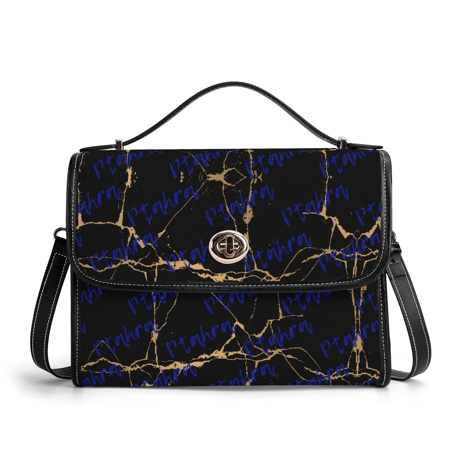 Ptahra Apparel Black/Blue Ptahra Print New Version PU Leather Satchel Bag