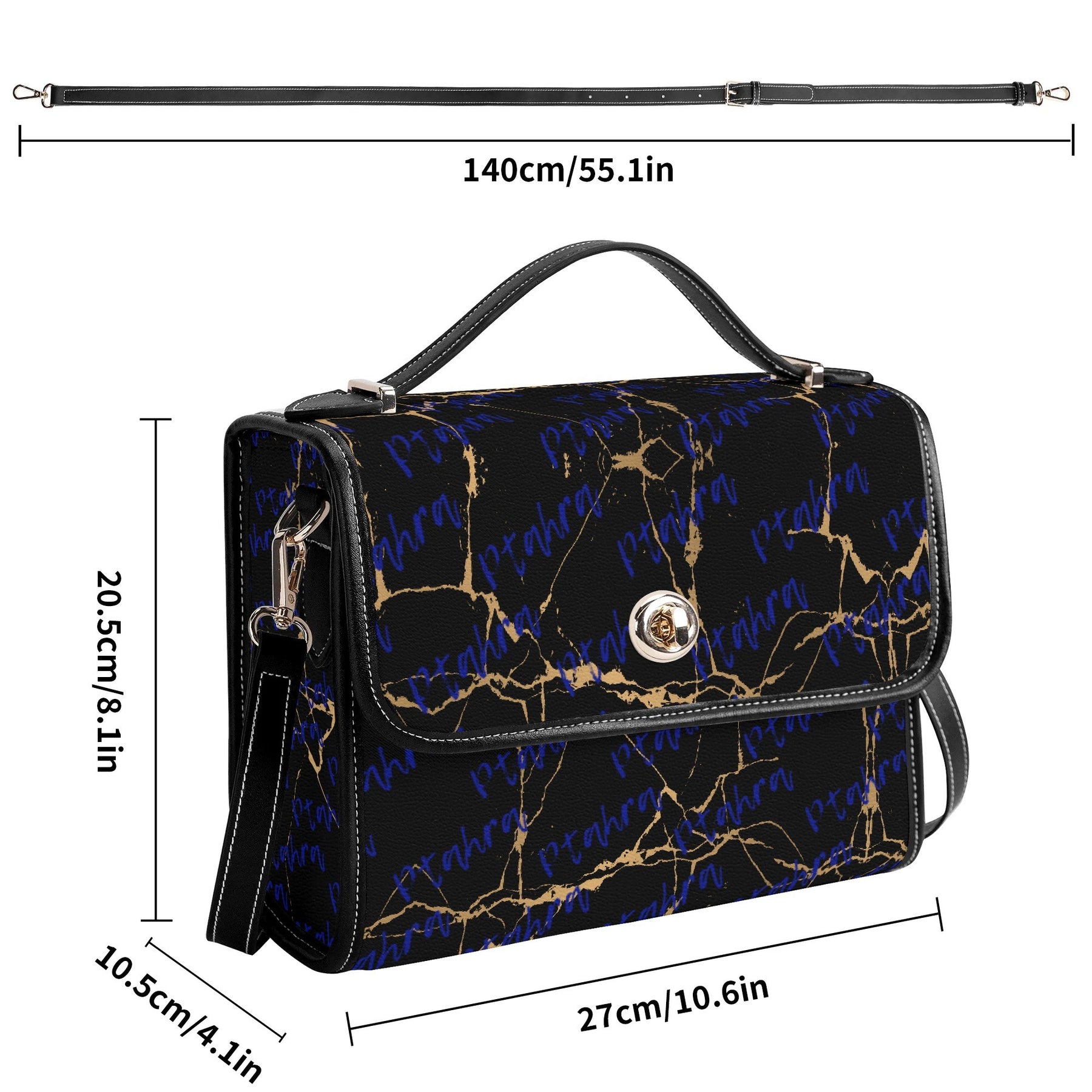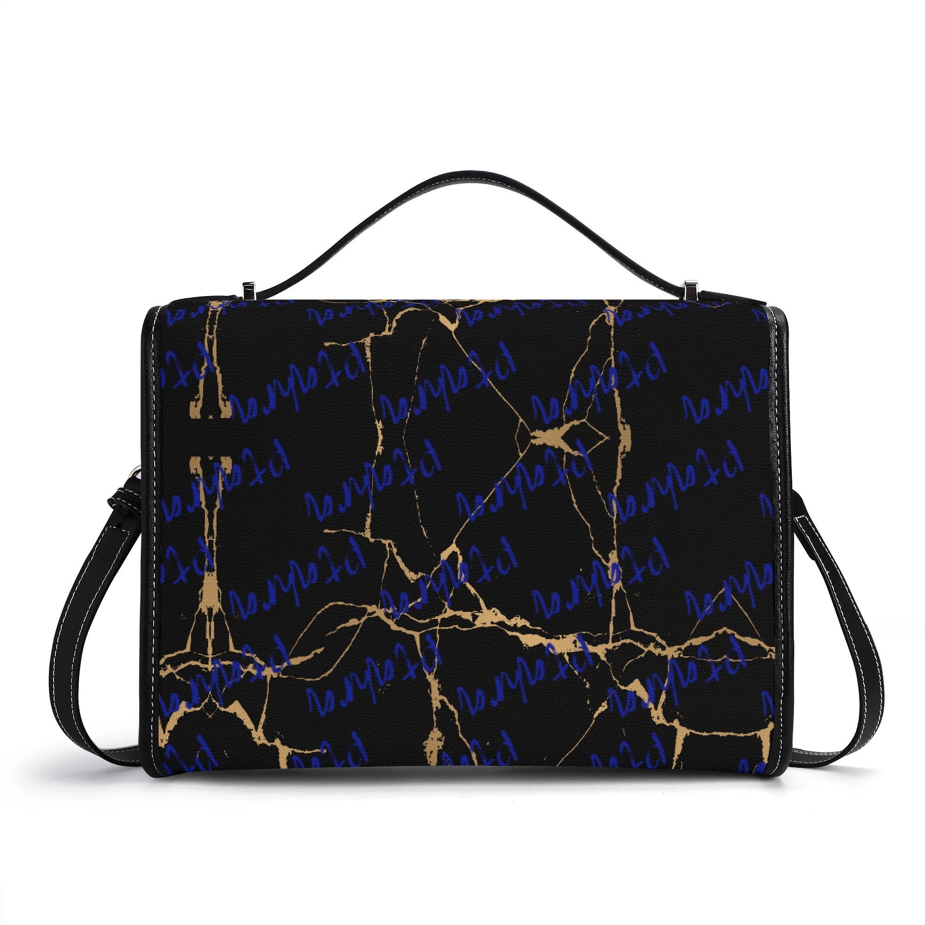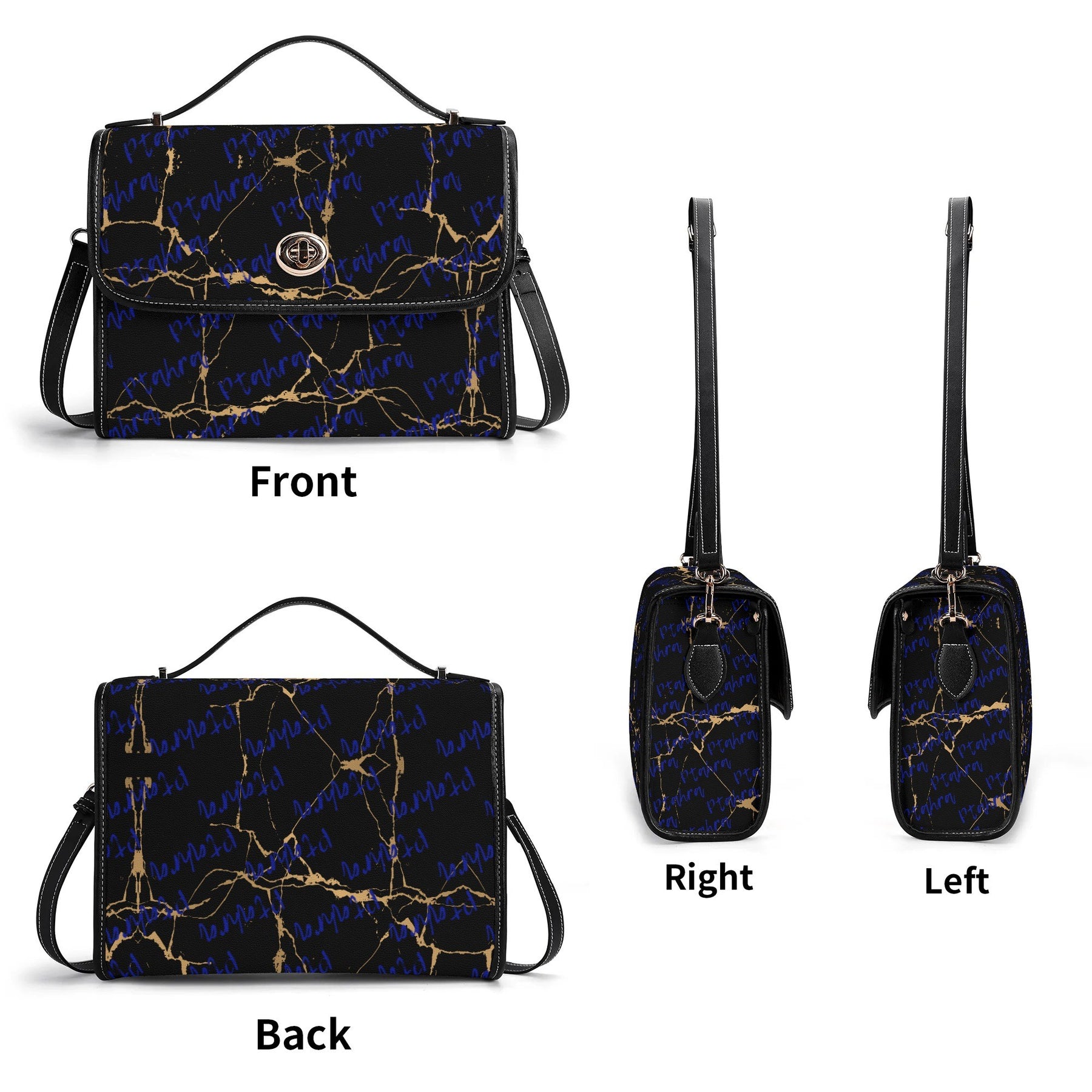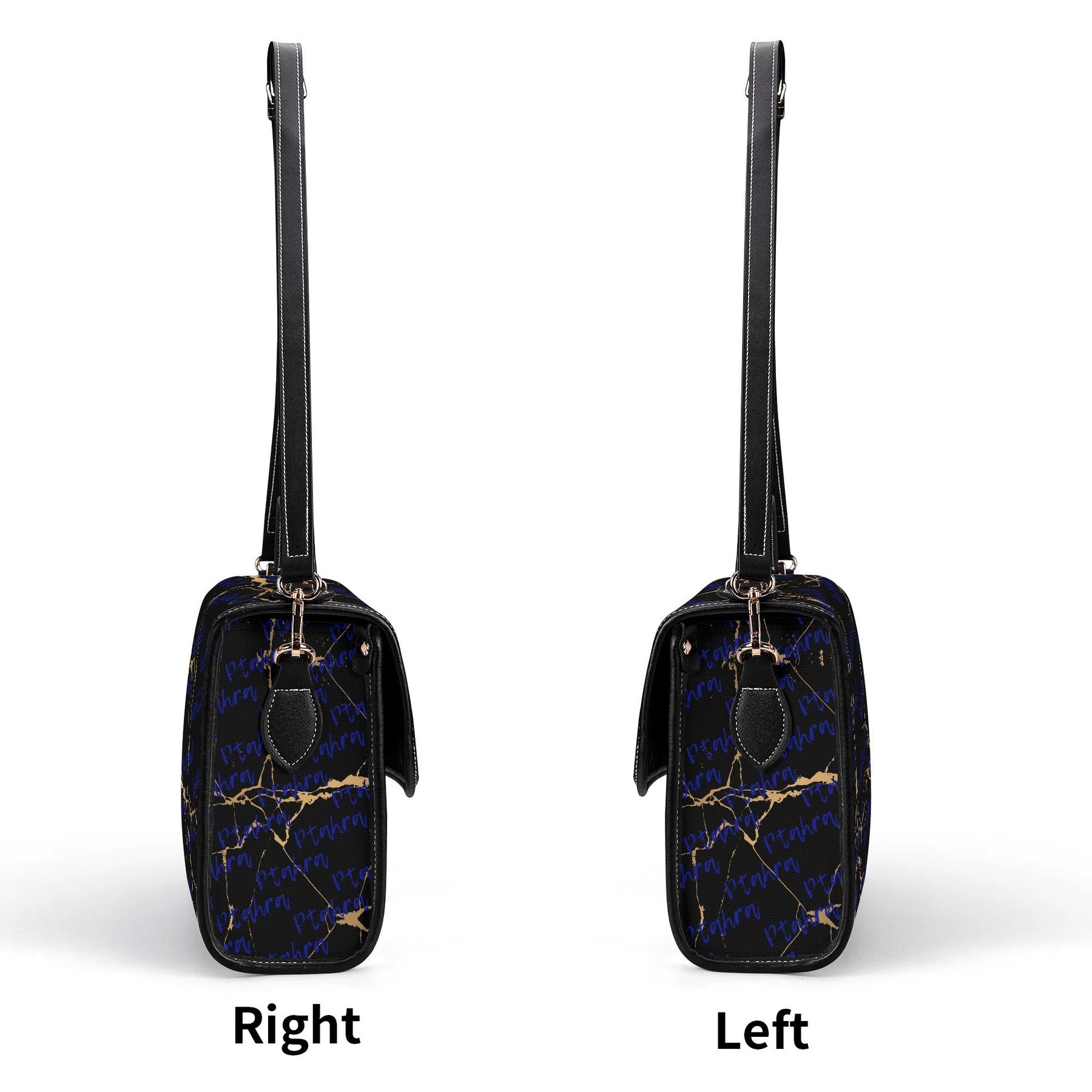 Ptahra Apparel Black/Blue Ptahra Print New Version PU Leather Satchel Bag