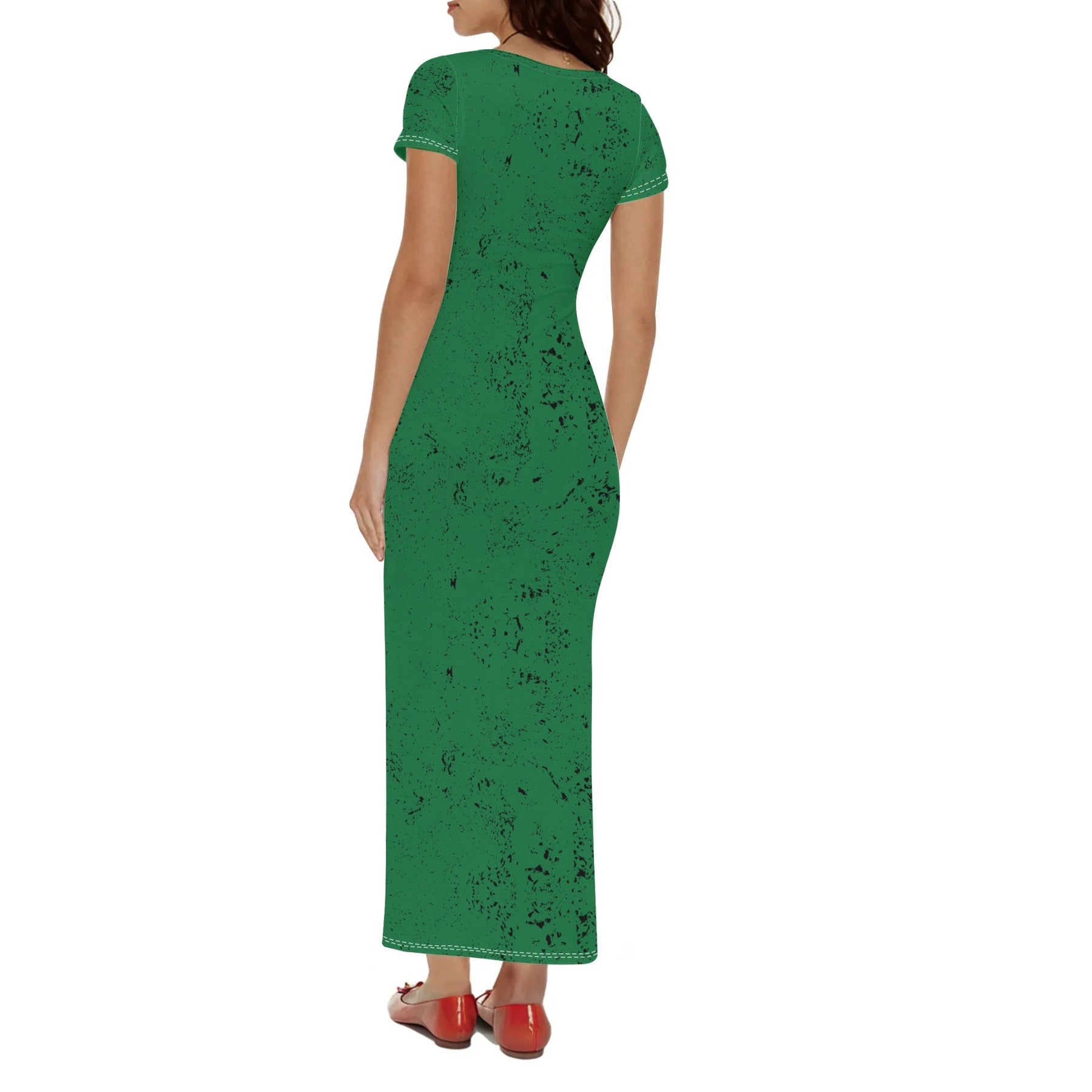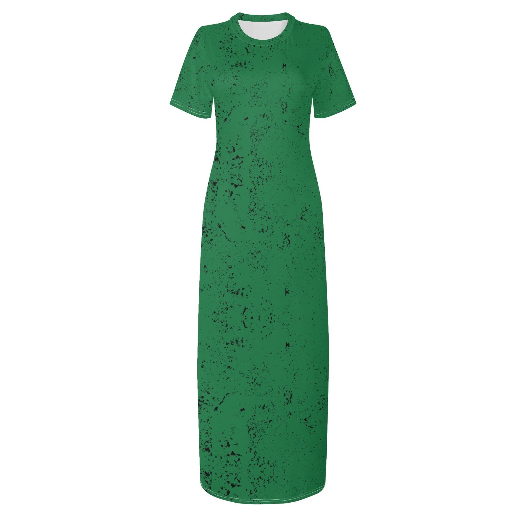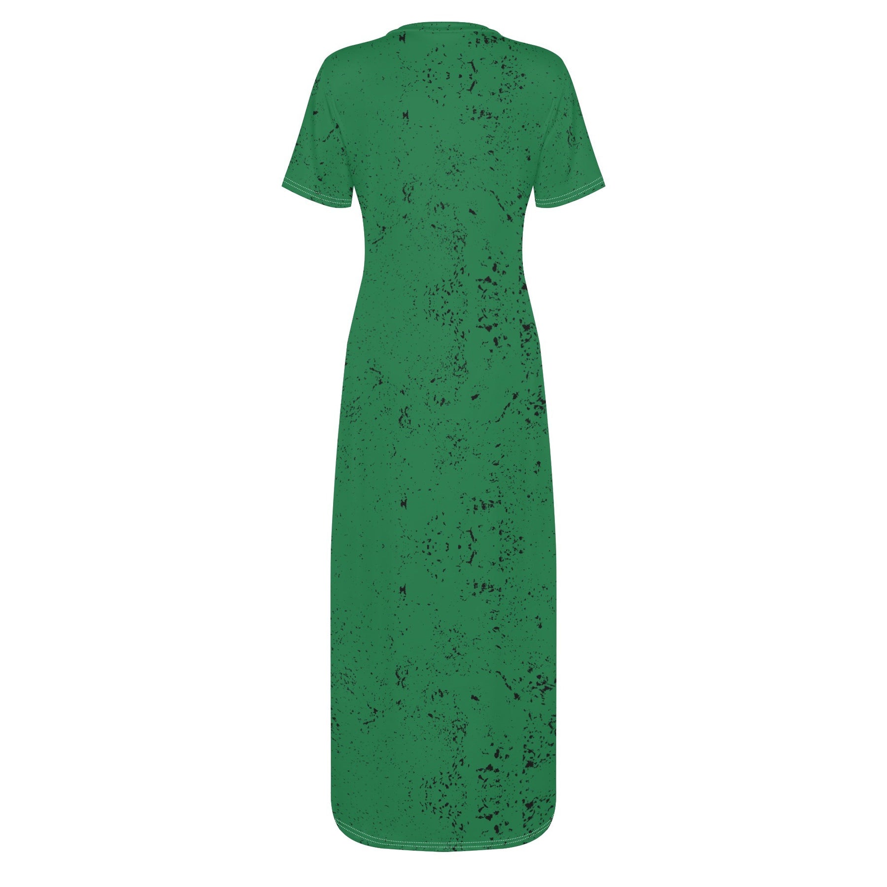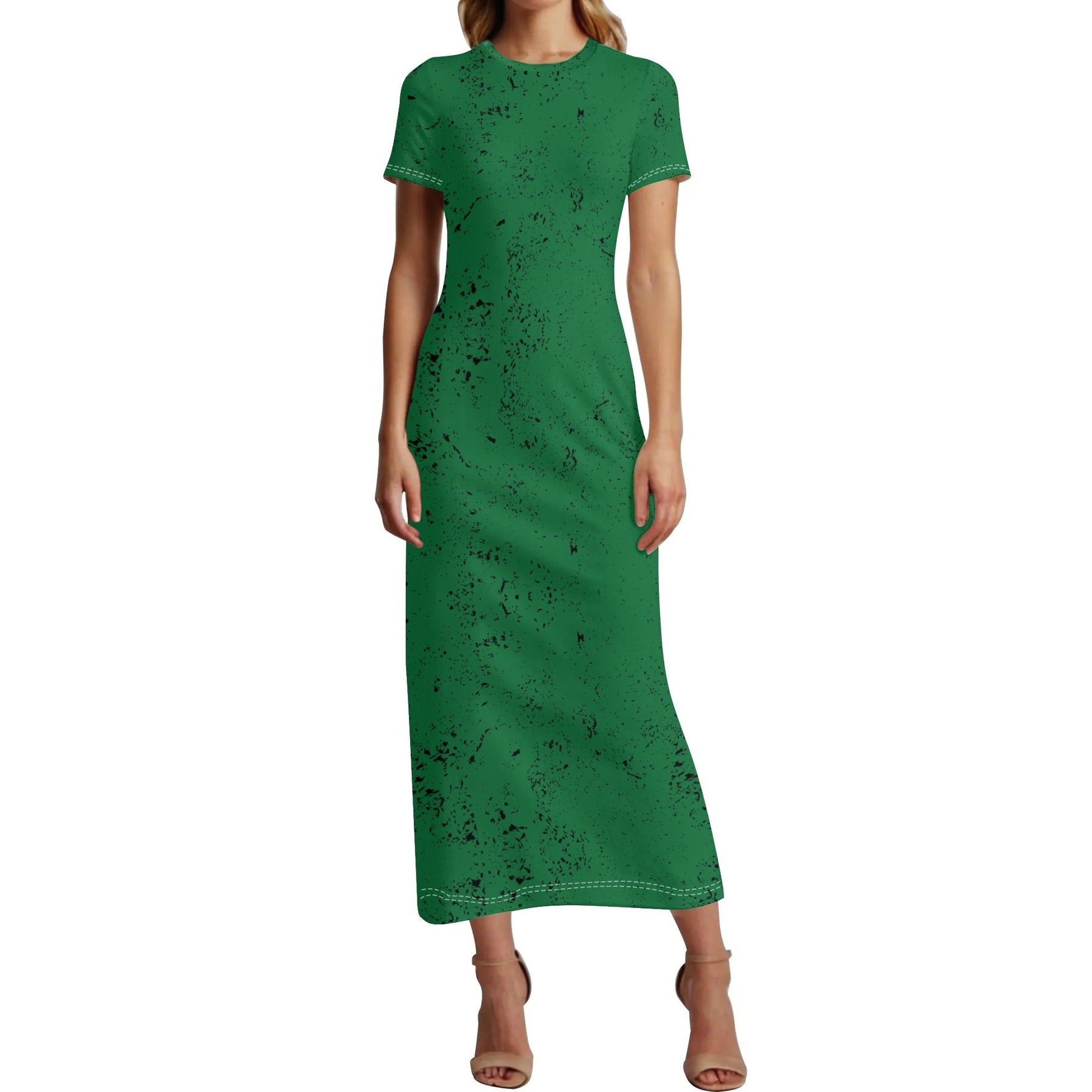 Ptahra Apparel Womens Green/Black Splat Short Sleeve Dress Casual T-shirt Long Dresses
