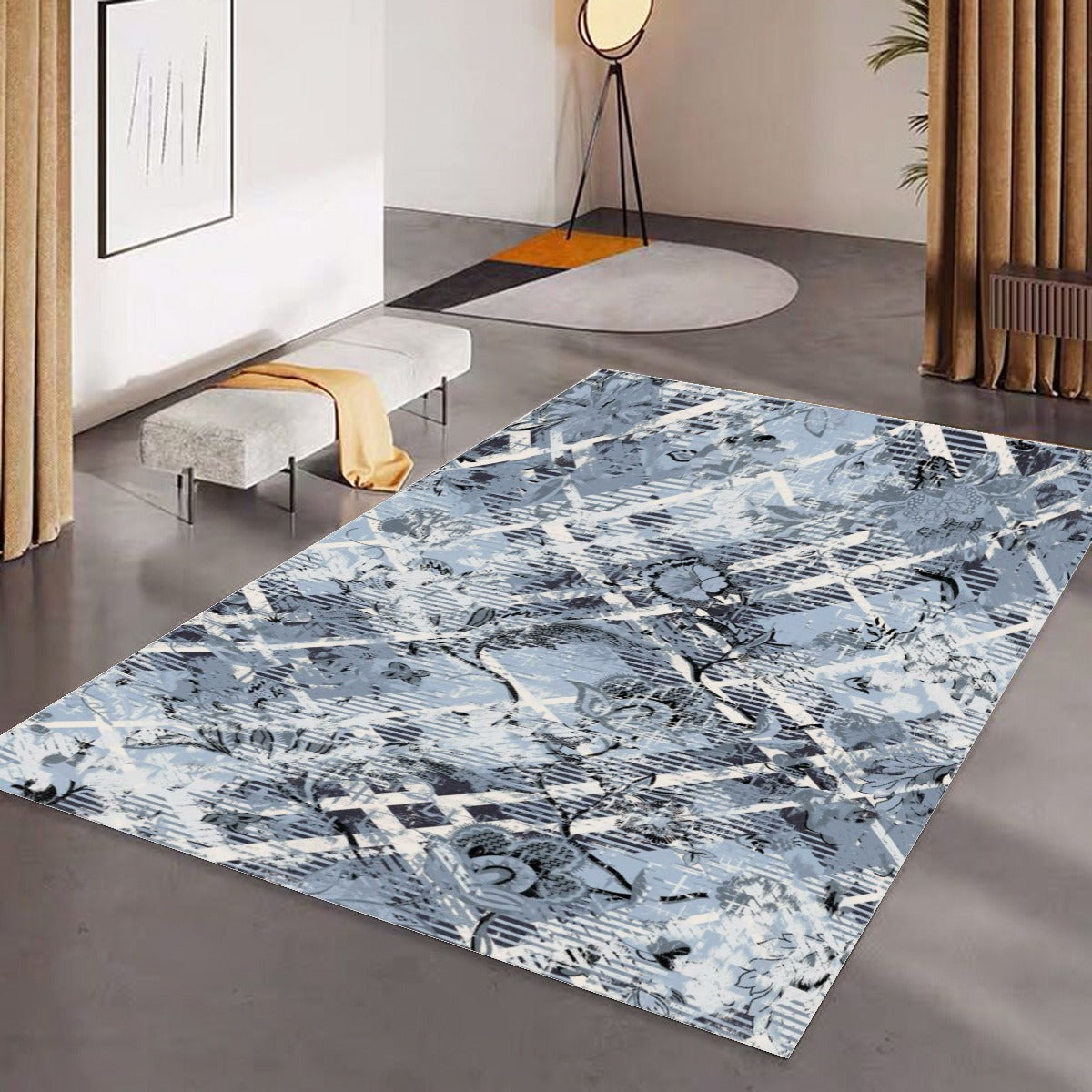 Ptahra B Blue Floral/Line Pattern Foldable Rectangular Floor Mat
