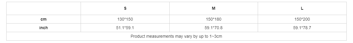 | inch | 51.1*59.1 | 59.1*70.8 | 59.1*78.7 |