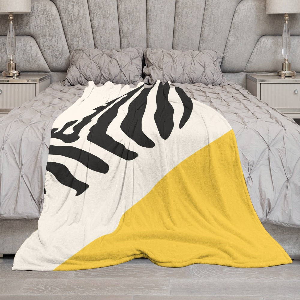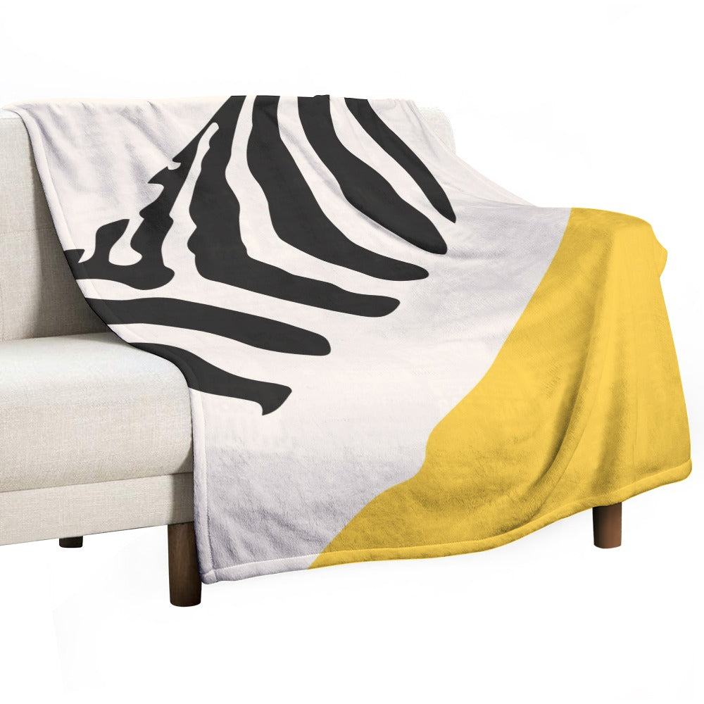 Ptahra B White/Yellow/Black Zebra Design Ultra-Soft Flannel Blanket