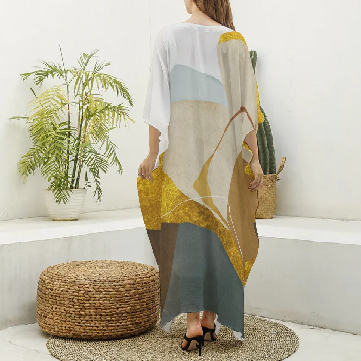 Ptahra B Women's Elegant Imitation Silk V-neck Kaftan Robe