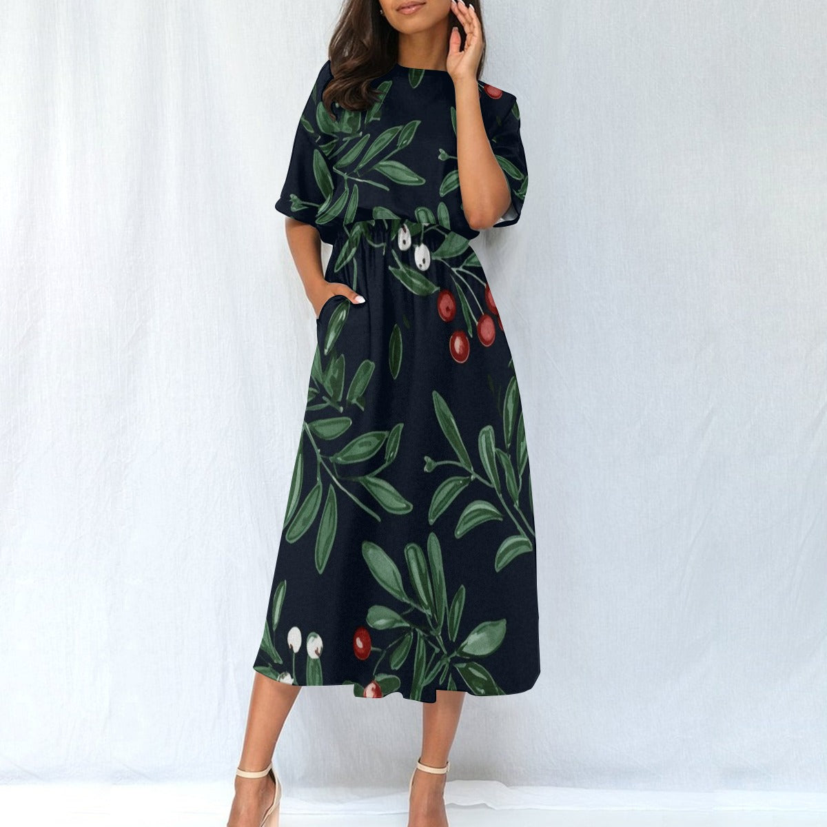 Ptahra B Women's Holiday Feel Elastic Waist Dress