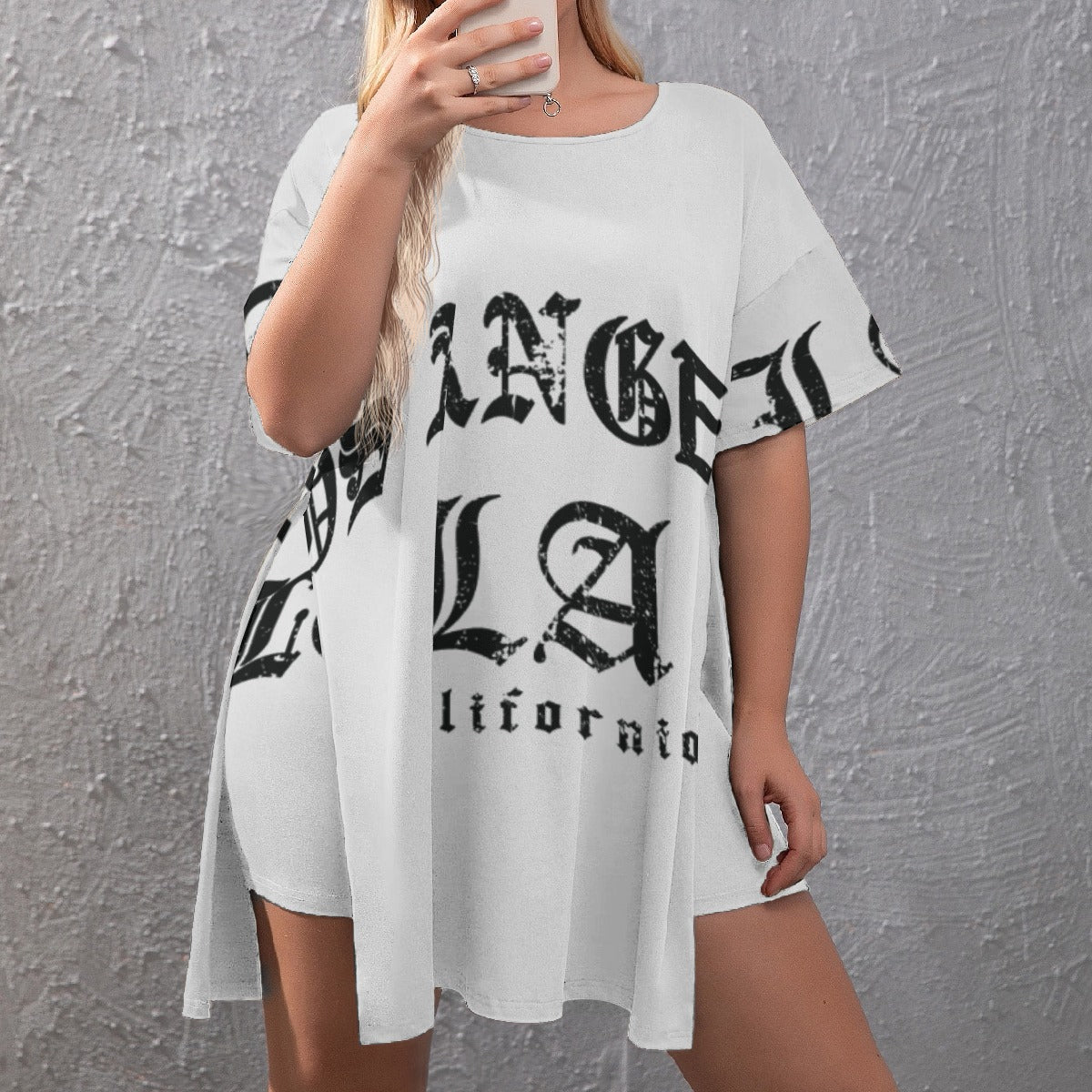 Ptahra B Women's Los California White Drop-Shoulder T-Shirt with Side Split and Shorts