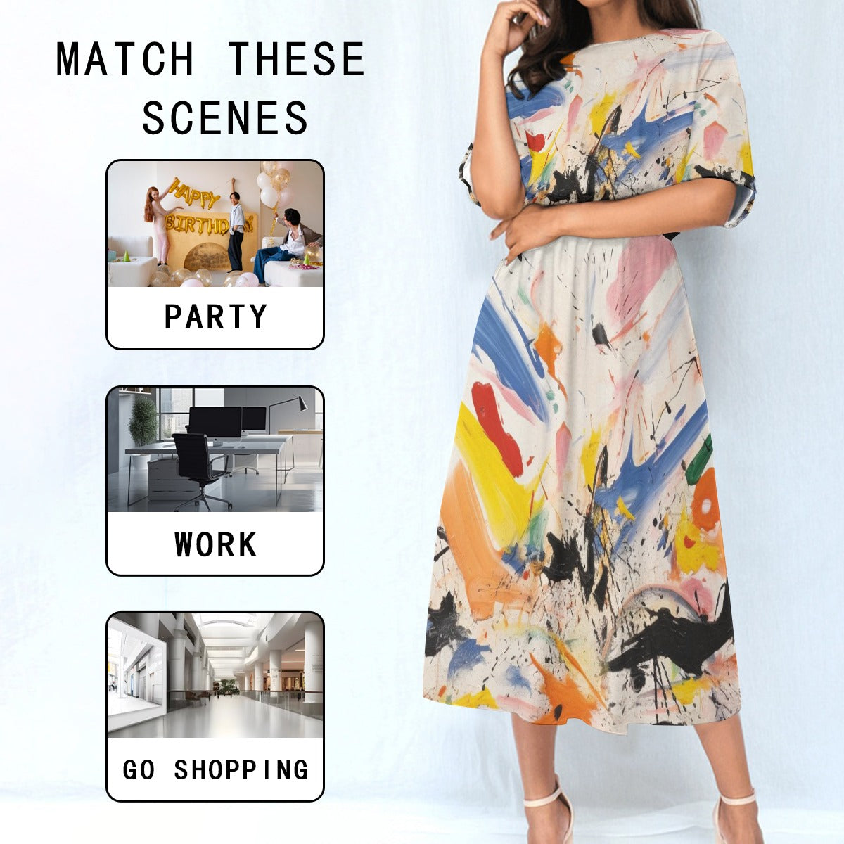 Ptahra B Women's Multi-Color Art Splat Elastic Waist Dress