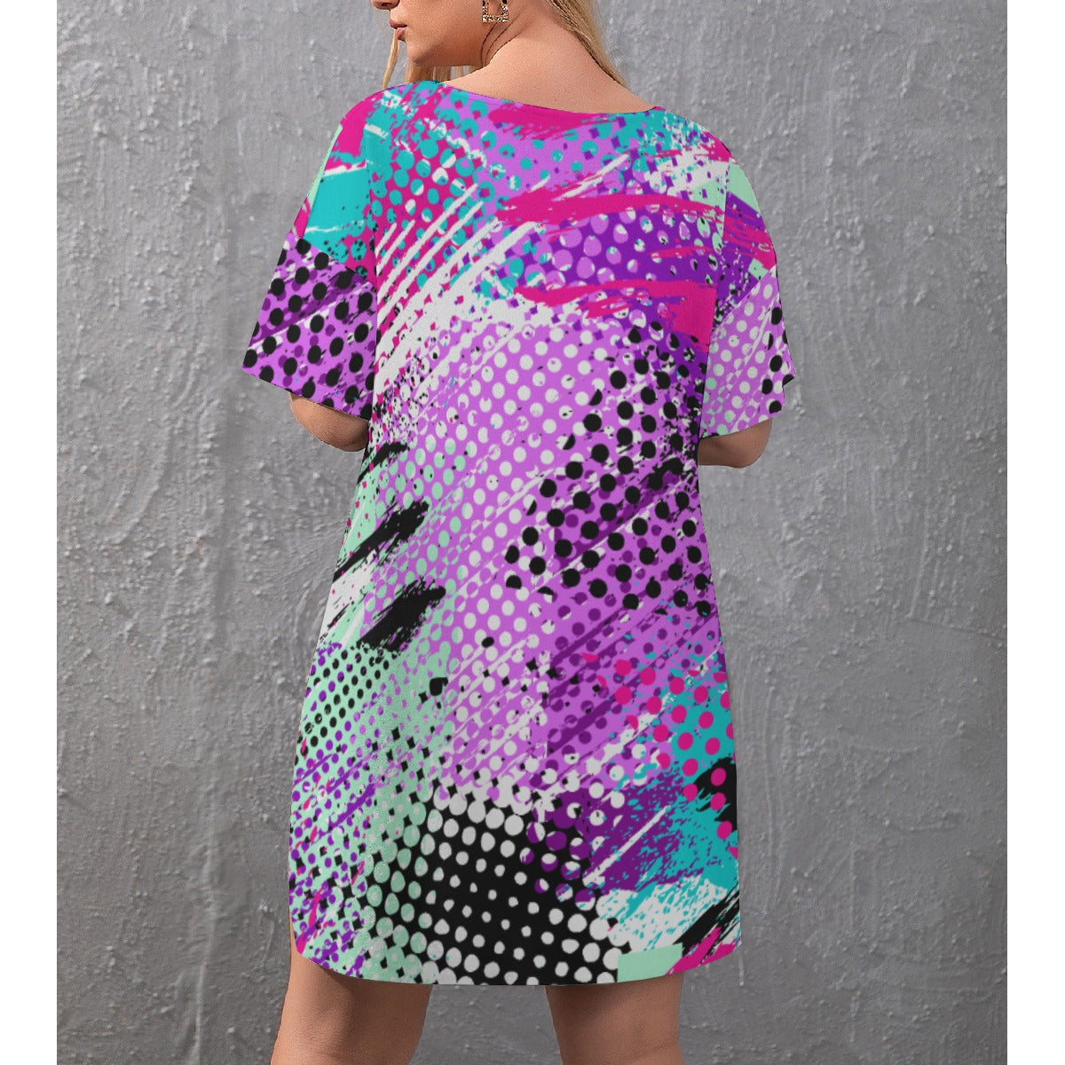 Ptahra B Women's Retro Style Drop-Shoulder T-Shirt with Side Split and Shorts (Plus Size)