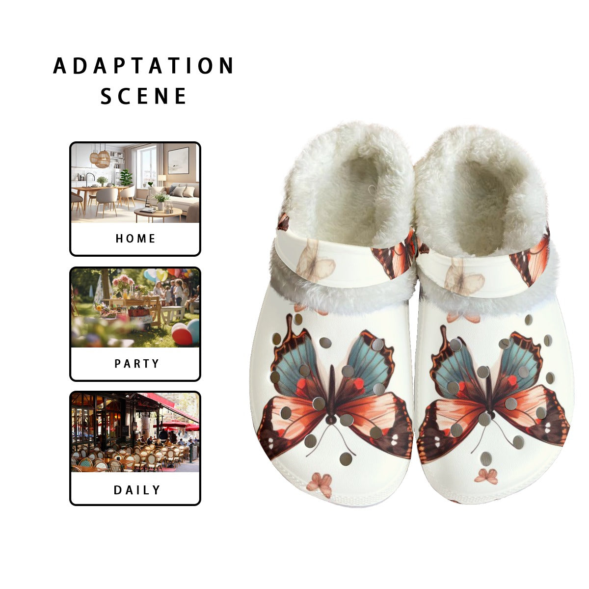 Ptahra B Women's White/Brown/Butterfly Classic Clogs with Fleece