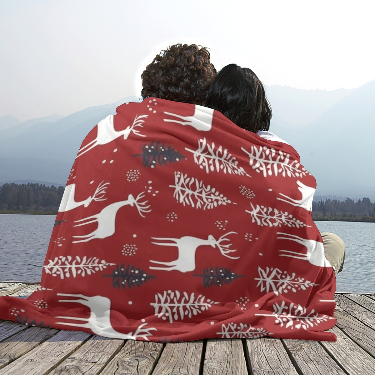 Ptahra Burgundy Red Christmas Deer Single-Side Flannel Blanket