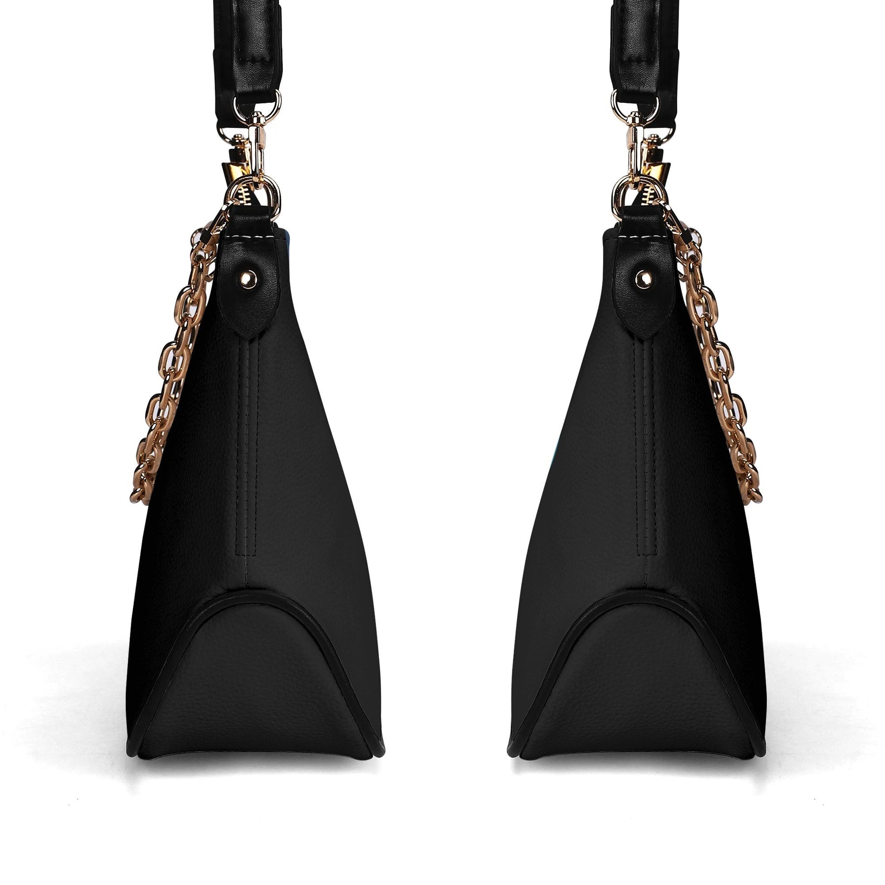 Elevate your style with all over printing for this Lady PU Cross-body Bag adorned with chic chain decorations. Crafted from high-quality PU leather, this bag boasts both fashion and functionality. Its adjustable and removable shoulder strap, along with a gold-tone zipper shoulder strap, offers versatility, while the secure zipper closure and rectangular base ensure your essentials stay safe.