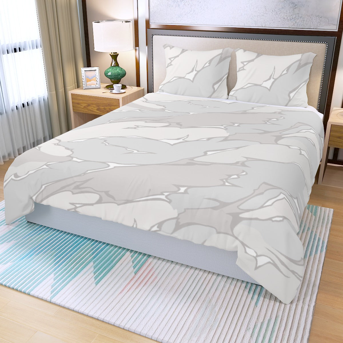Ptahra Multi-Grey Stone Pattern Three Piece Duvet Bedding Set