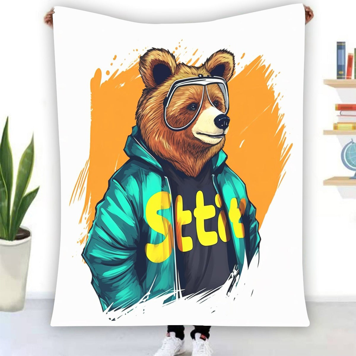 Ptahra White Cool Bear Single-Side Flannel Blanket