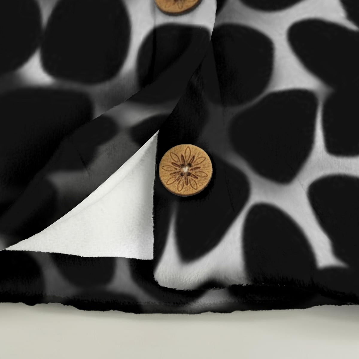 Ptahra Women's Black Leopard Design Flannel Hoodie with Cat Ears