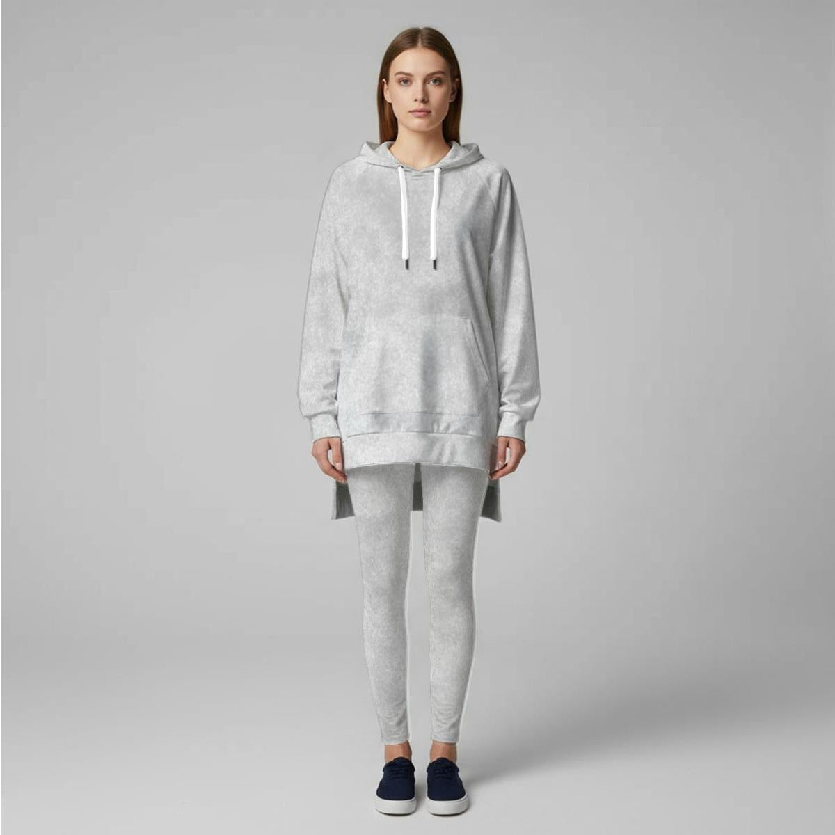 This hoodie and leggings set is crafted from high-stretch fabric for the perfect blend of comfort and mobility. The hoodie effortlessly pairs with the slim-fitting leggings for a balanced, modern silhouette. Soft, breathable, and stretchy, this set is perfect for lounging, running errands, or just hanging out.