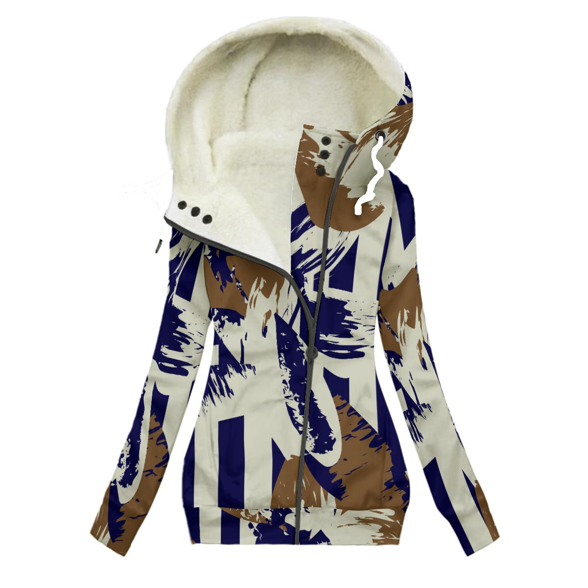 Ptahra Women's Light Beige/Navy Blue/ Brown Artistic Long Jacket With Fleece Lining