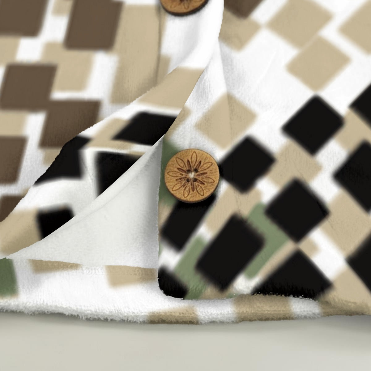 Ptahra Women's Multi-Color Squares in Circle Pattern Flannel Hoodie with Cat Ears