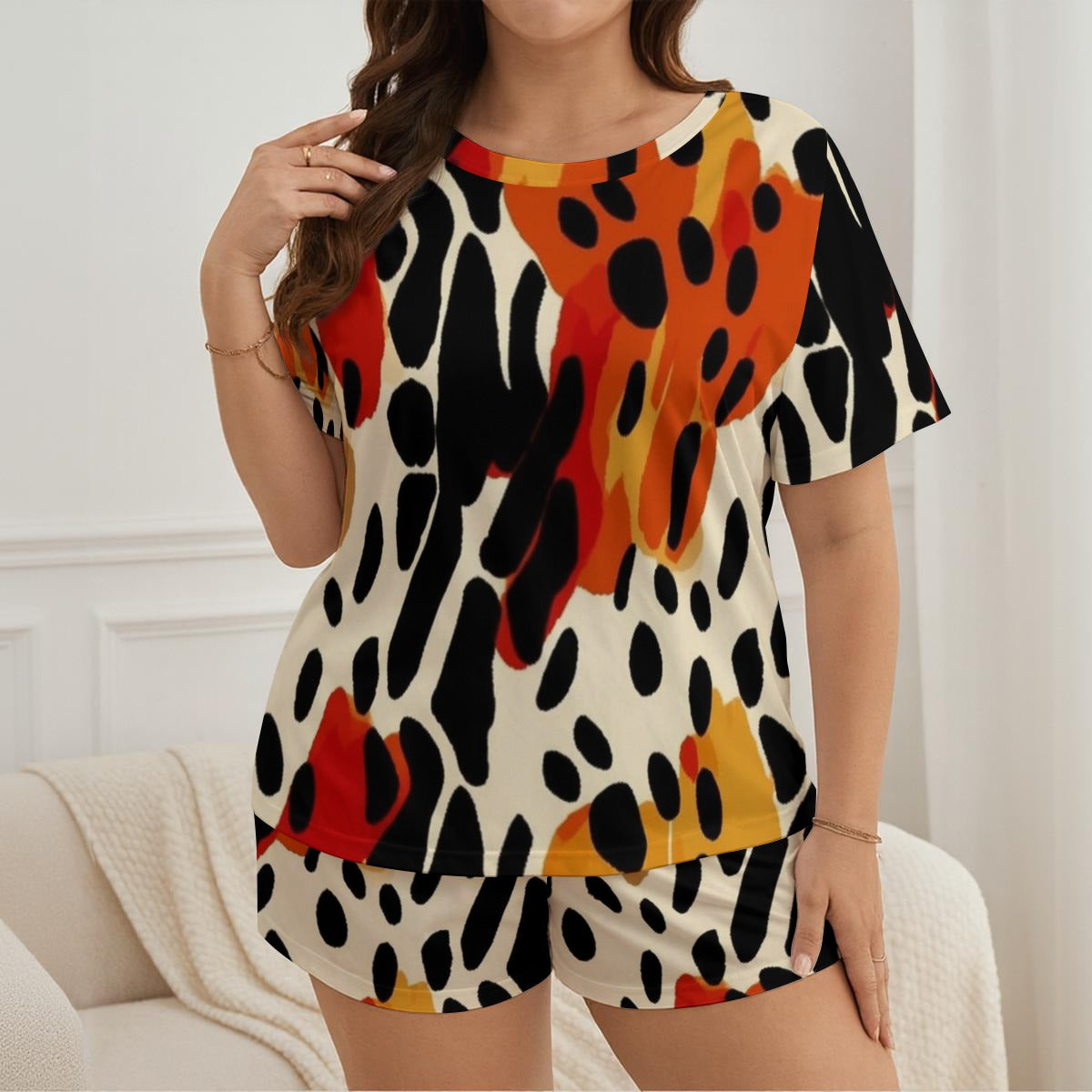 Ptahra Women's Red/Yellow/Black Design Soft-Touch Pajama Set With Shorts