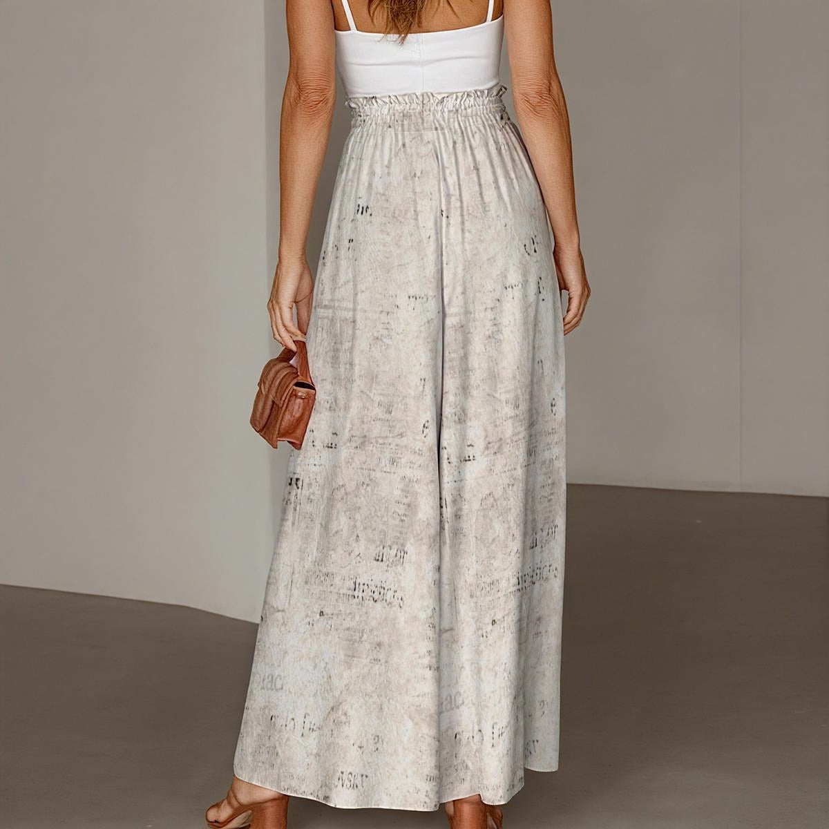 Ptahra Women's Rustic Letter Design Ruffled Wide-Leg Pants