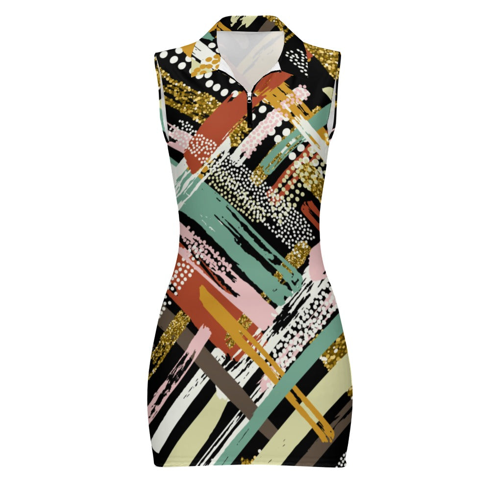 Women's Multi-Design Short Sleeve Dress with Short Zipper